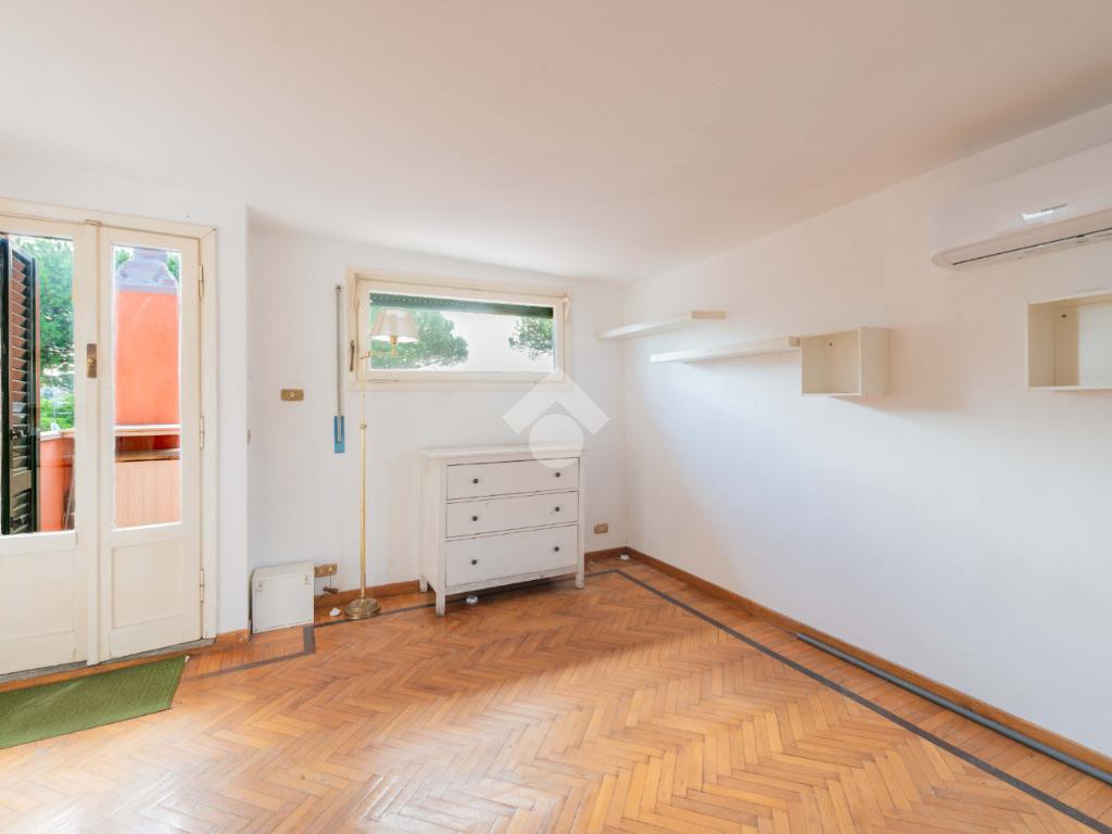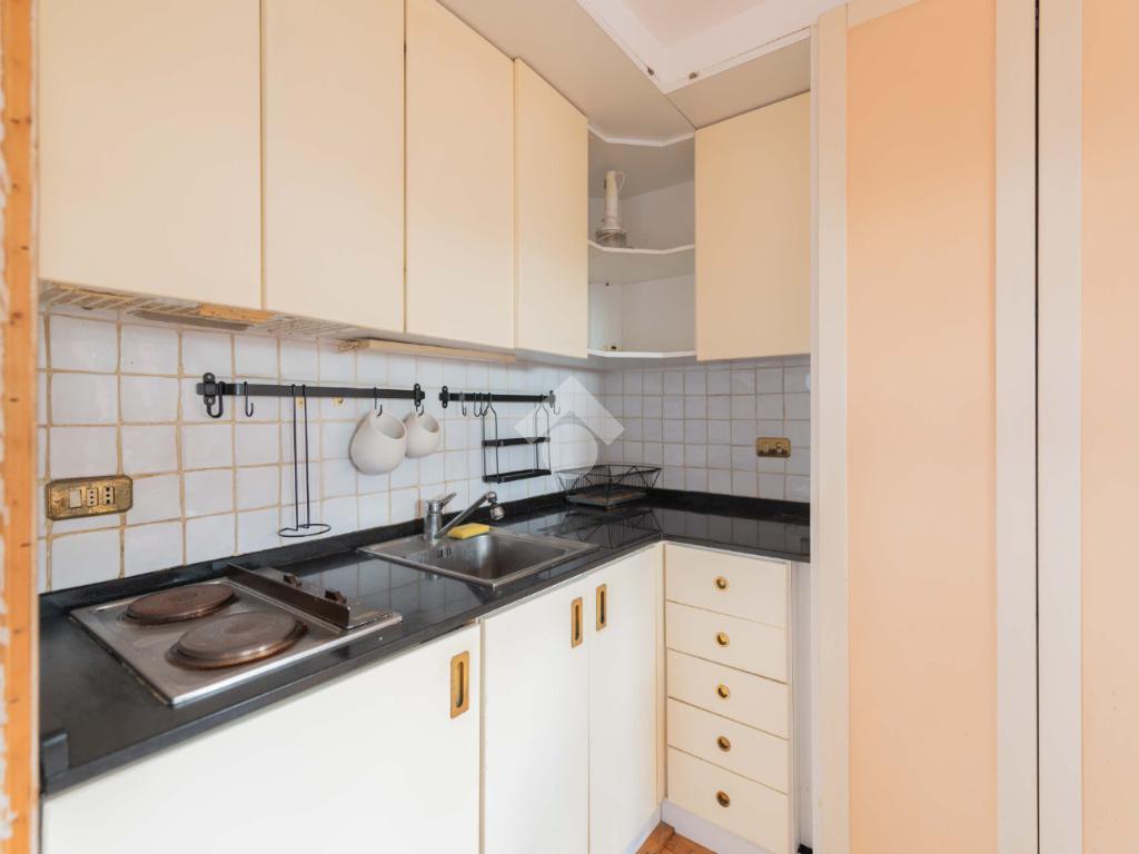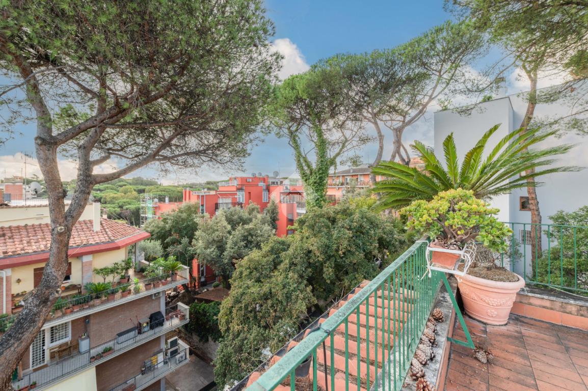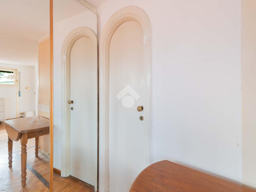 SUPERATTICO di circa 35 mq posto al 5° piano all'interno di una palazzina dotata di ascensore che arriva al 4° all' interno di un comprensorio di due palazzine in cortina. L'immobile è composto da ingresso, zona giorno/notte, angolo cottura, due armadi a muro e bagno finestrato con doccia. Il vero protagonista è l'ampio terrazzo di circa 100 con affaccio aperto e panoramico nel verde. Dispone di pavimenti in parquet, climatizzatore ed il riscaldamento centralizzato con i contabilizzatori. La soluzione immobiliare è da ristrutturare.