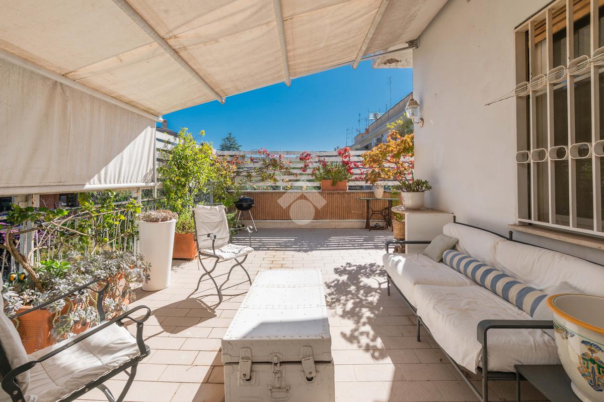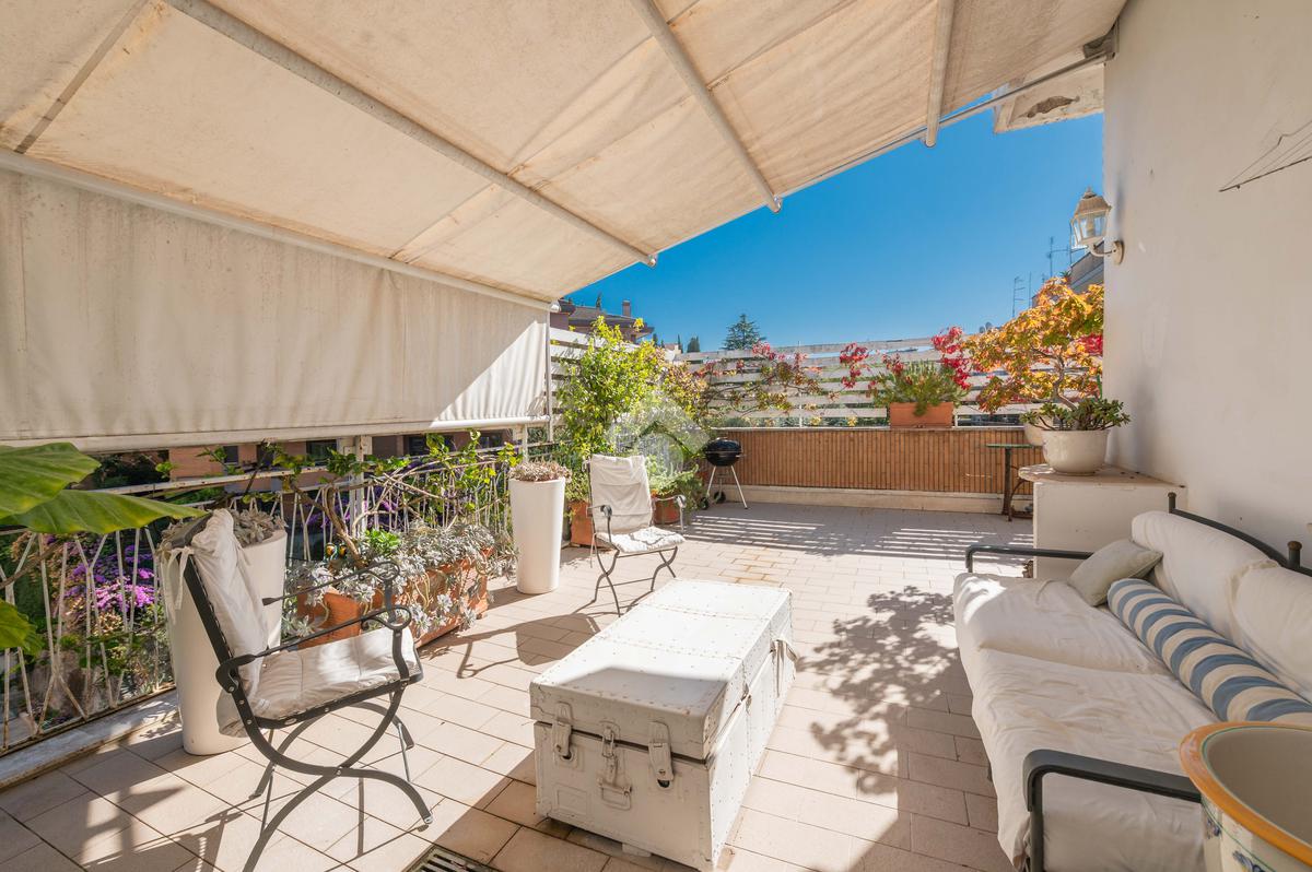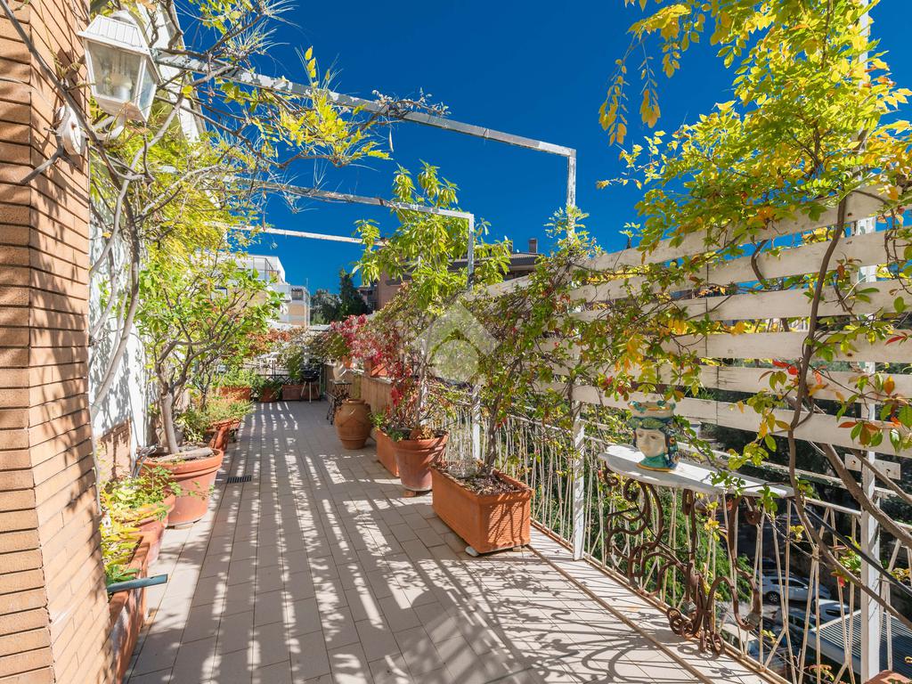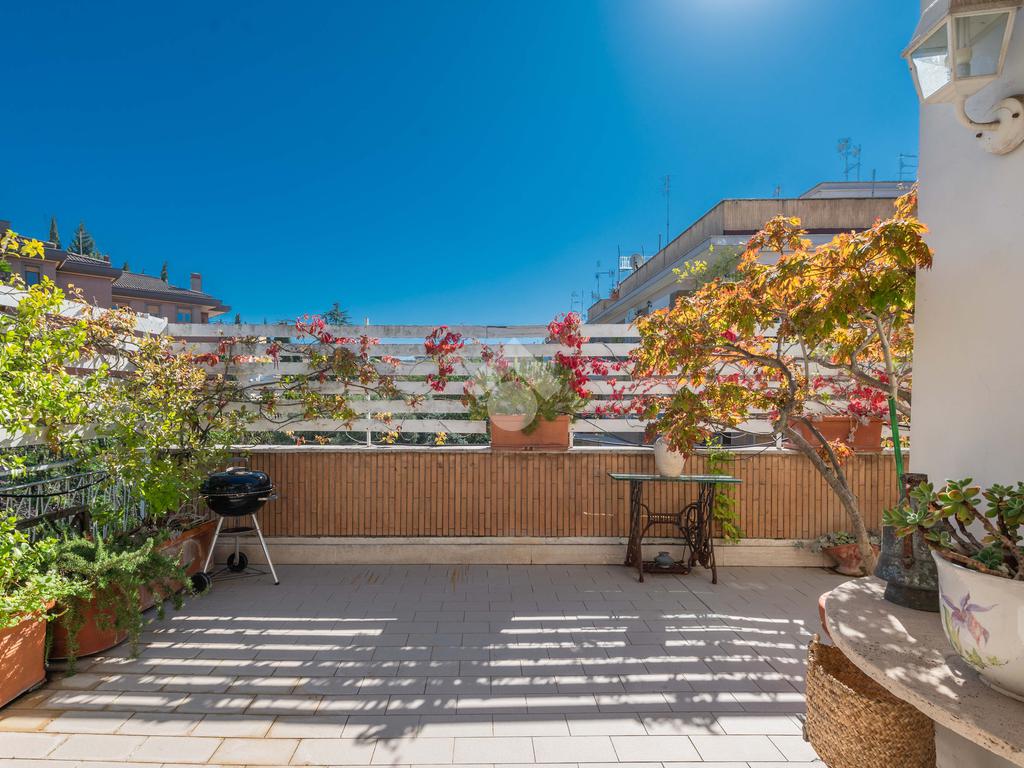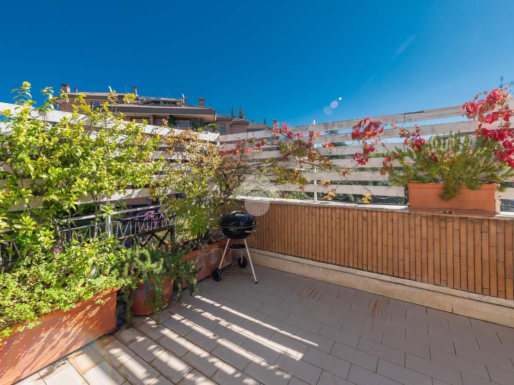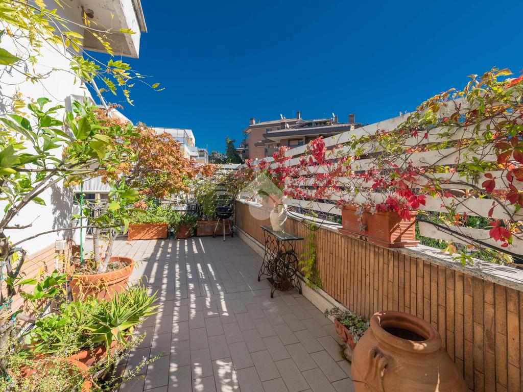 Camilluccia - Via Trionfale- Nel tratto a senso unico della via Trionfale in prossimità di via della Camilluccia, Via Massimi e non distante dal quartiere Prati, proponiamo in vendita ATTICO dotato di un particolare e versatile terrazzo di 60 mq di forma ad 'L' che offre possibilità di realizzare diversi spazi relax. L'attico si sviluppa su una superficie di circa 156 mq e si trova al 4° piano di una palazzina in cortina dotata di ascensore. Internamente si presenta da ingresso, ampio salone con camino, sala da pranzo, cucina, disimpegno, 3 camere da letto, 2 bagni e 2 ripostigli. Dispone di infissi doppi in pvc, inferriate, pavimenti in marmo nella zona giorno e parquet nella zona notte, impianto d'allarme ed il riscaldamento centralizzato. L'attico permette anche una eventuale personalizzazione degli ambienti a seconda delle proprie esigenze, oppure si può mantenere l'attuale suddivisione interna. Possibilità di parcheggio sotto il palazzo in area condominiale non assegnata e di un box auto di 60 mq a parte.