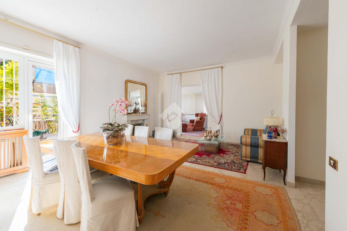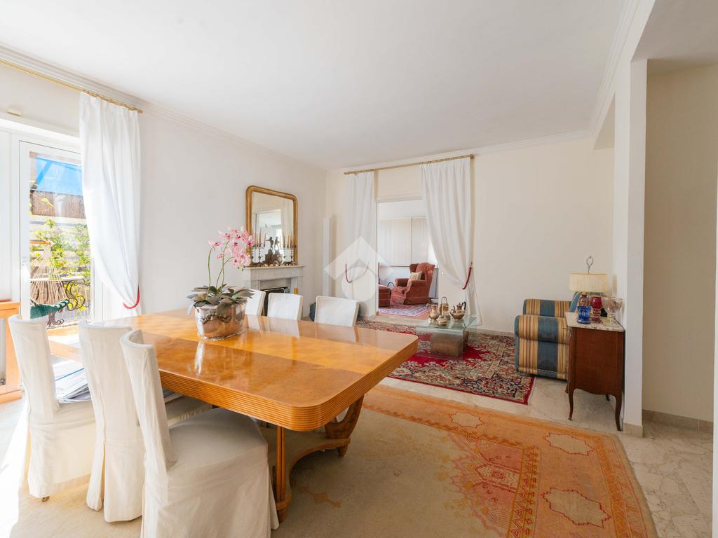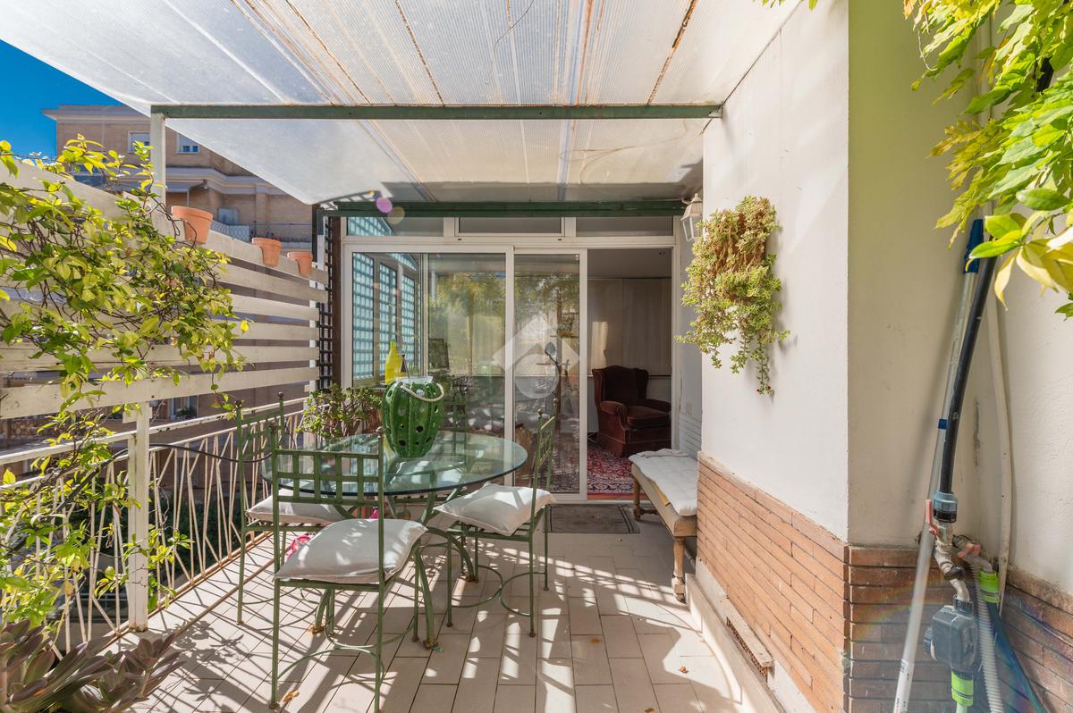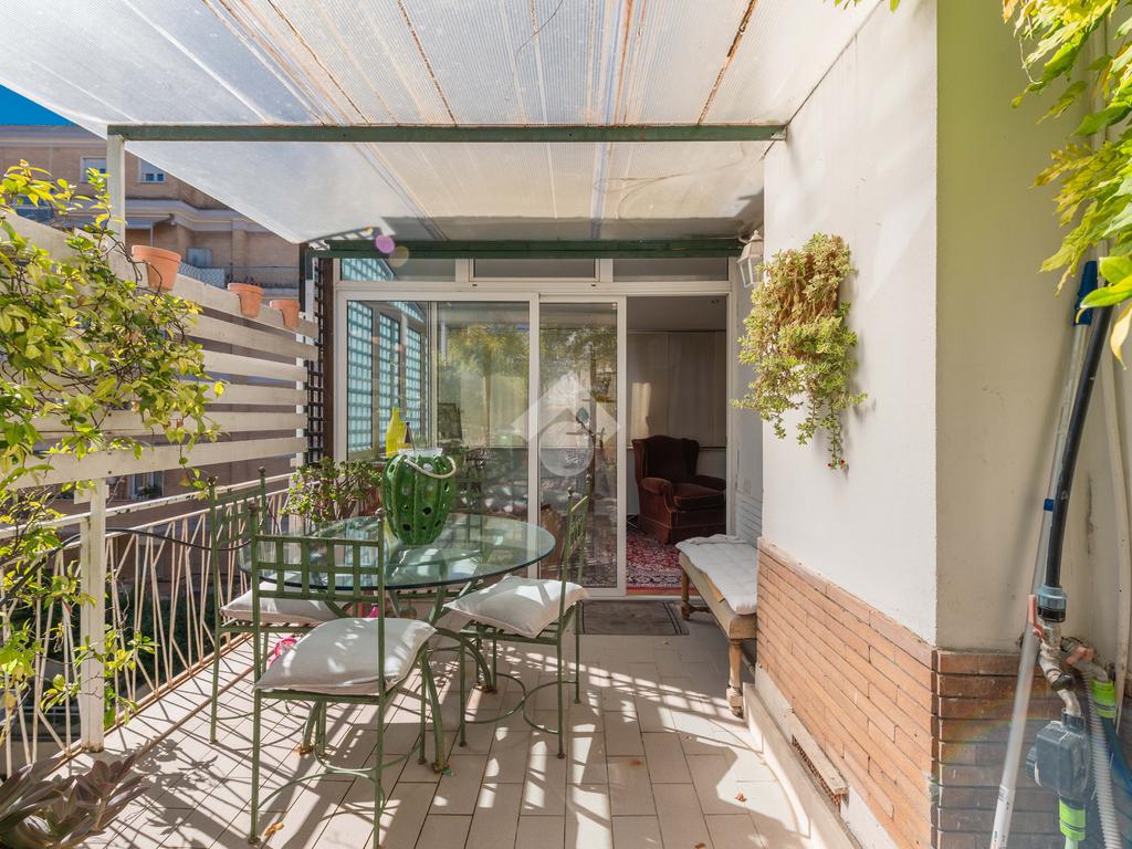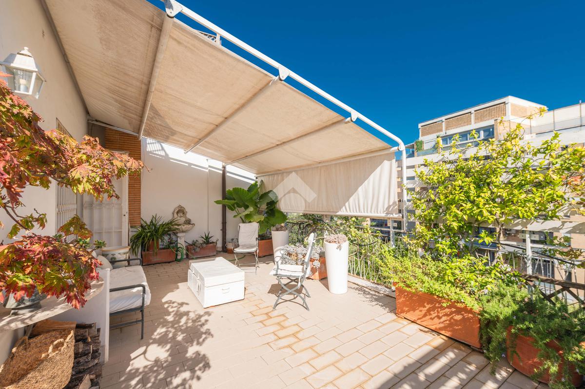 Camilluccia - Via Trionfale- Nel tratto a senso unico della via Trionfale in prossimità di via della Camilluccia, Via Massimi e non distante dal quartiere Prati, proponiamo in vendita ATTICO dotato di un particolare e versatile terrazzo di 60 mq di forma ad 'L' che offre possibilità di realizzare diversi spazi relax. L'attico si sviluppa su una superficie di circa 156 mq e si trova al 4° piano di una palazzina in cortina dotata di ascensore. Internamente si presenta da ingresso, ampio salone con camino, sala da pranzo, cucina, disimpegno, 3 camere da letto, 2 bagni e 2 ripostigli. Dispone di infissi doppi in pvc, inferriate, pavimenti in marmo nella zona giorno e parquet nella zona notte, impianto d'allarme ed il riscaldamento centralizzato. L'attico permette anche una eventuale personalizzazione degli ambienti a seconda delle proprie esigenze, oppure si può mantenere l'attuale suddivisione interna. Possibilità di parcheggio sotto il palazzo in area condominiale non assegnata e di un box auto di 60 mq a parte.
