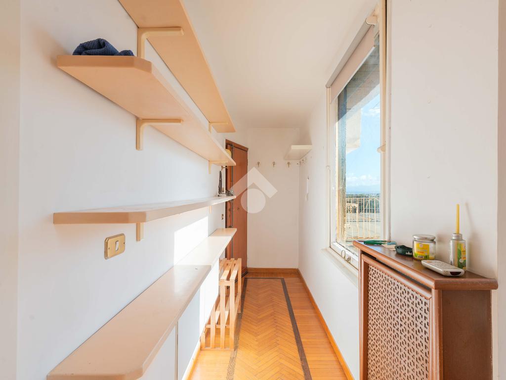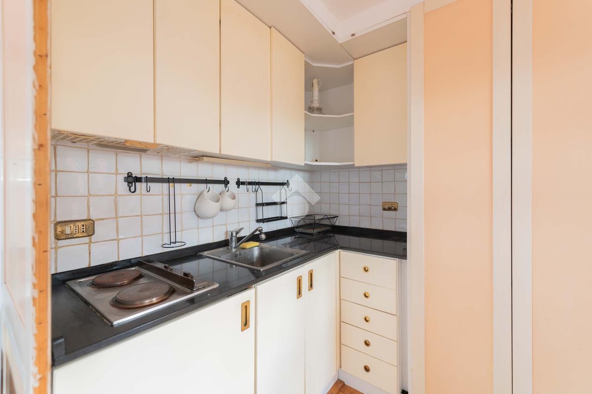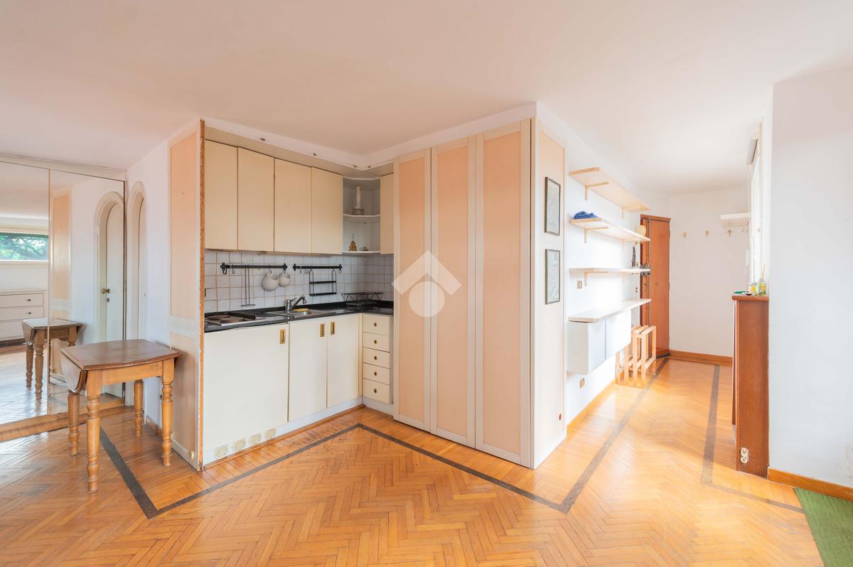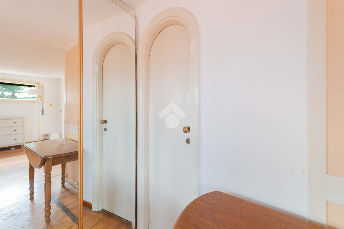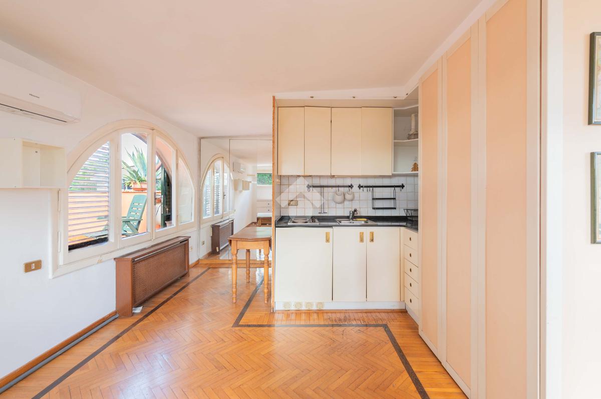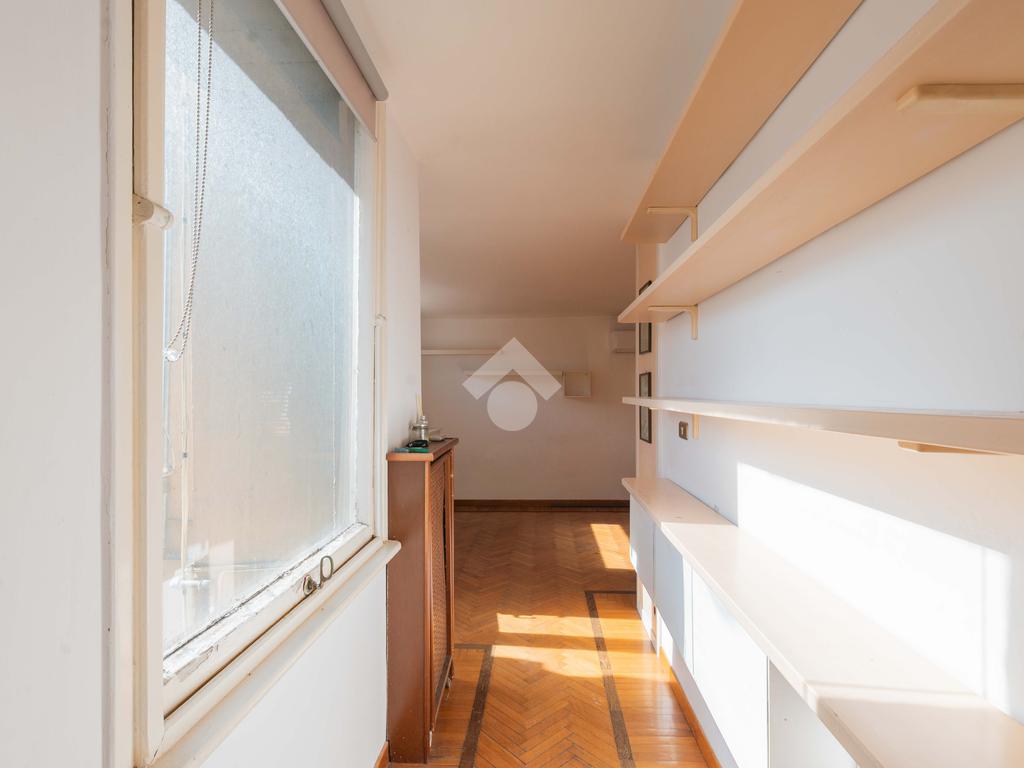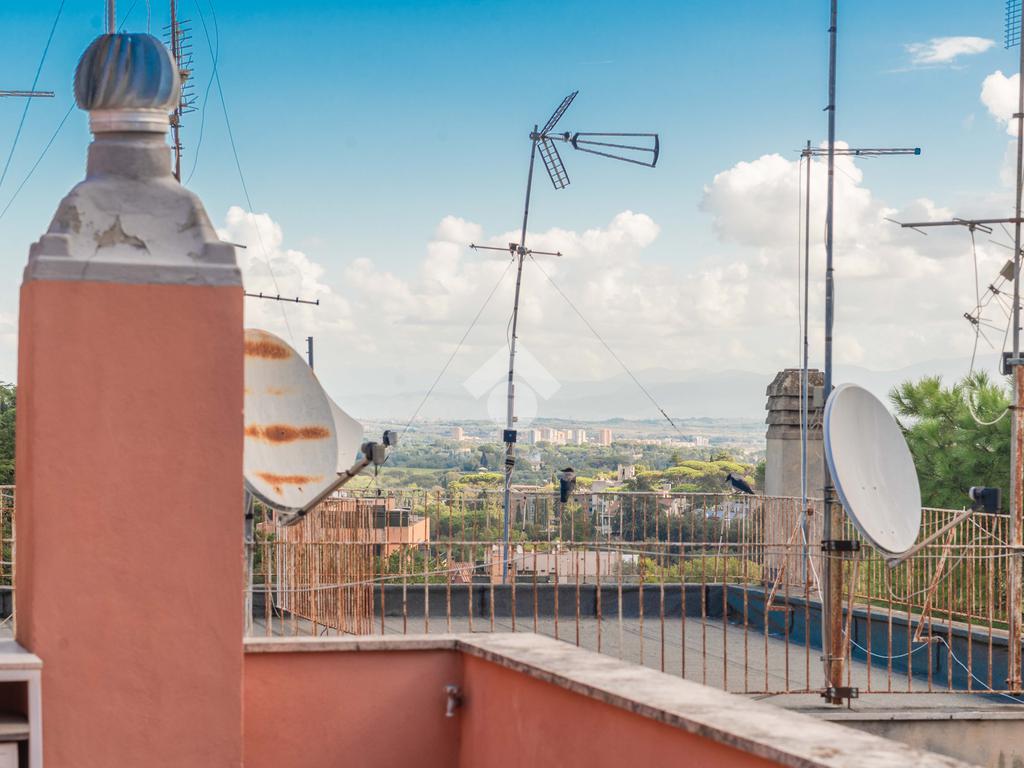 SUPERATTICO di circa 35 mq posto al 5° piano all'interno di una palazzina dotata di ascensore che arriva al 4° all' interno di un comprensorio di due palazzine in cortina. L'immobile è composto da ingresso, zona giorno/notte, angolo cottura, due armadi a muro e bagno finestrato con doccia. Il vero protagonista è l'ampio terrazzo di circa 100 con affaccio aperto e panoramico nel verde. Dispone di pavimenti in parquet, climatizzatore ed il riscaldamento centralizzato con i contabilizzatori. La soluzione immobiliare è da ristrutturare.