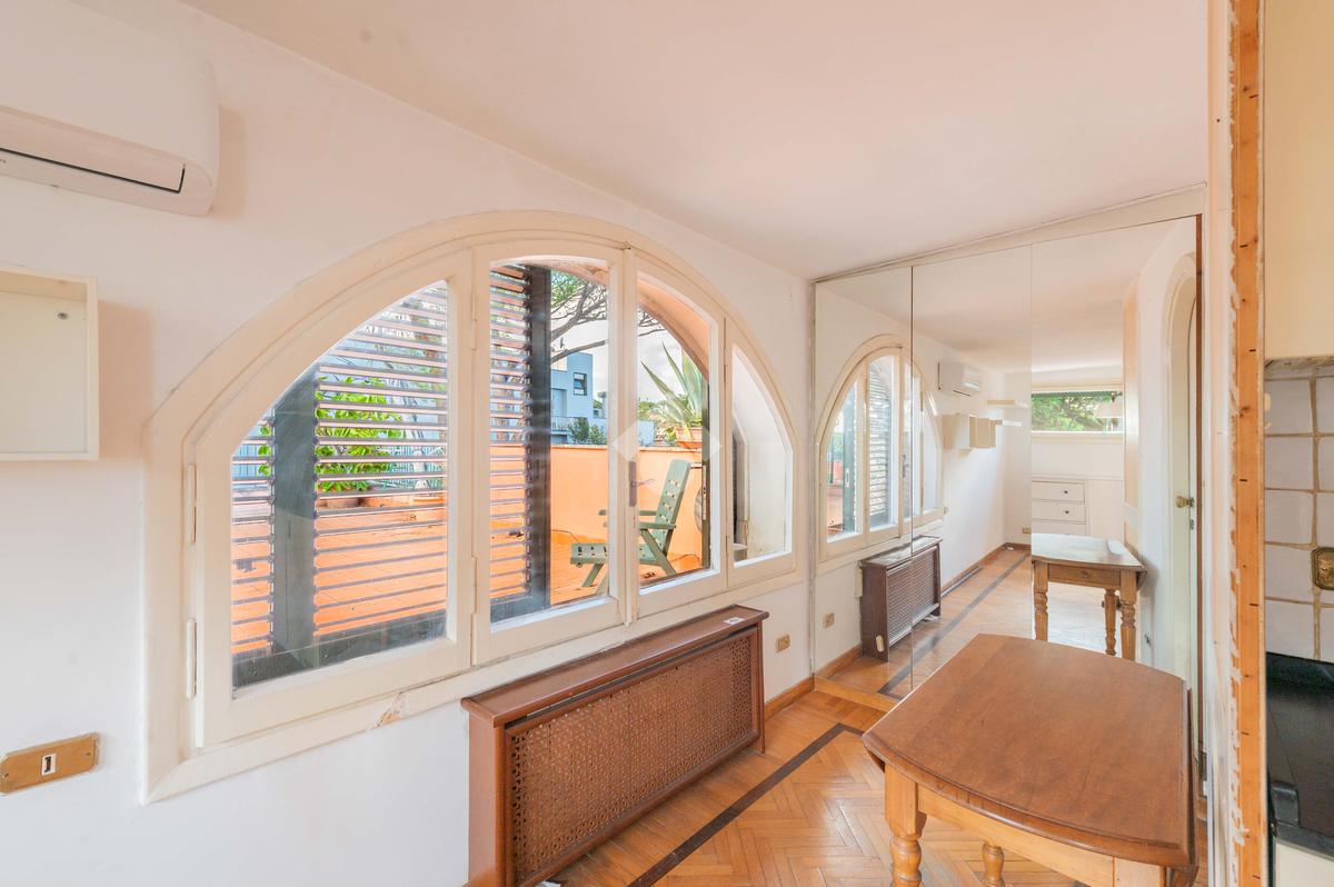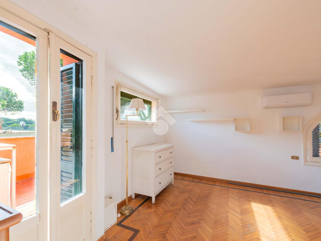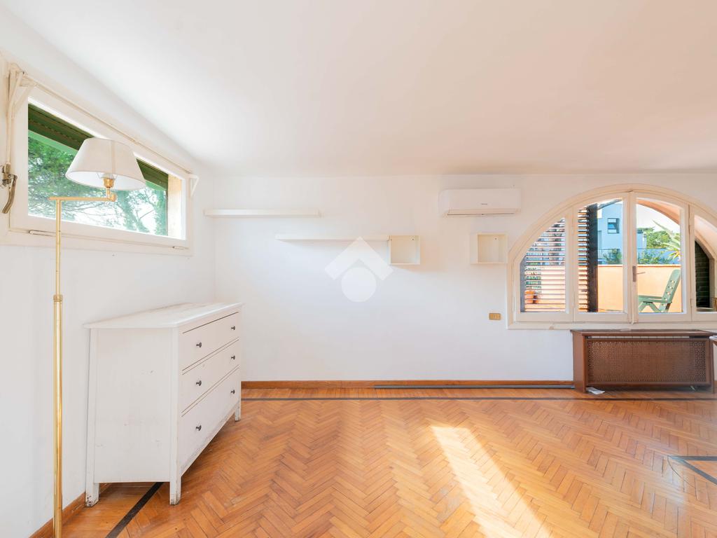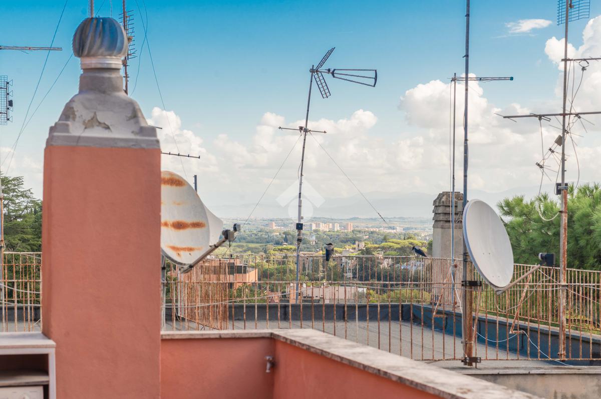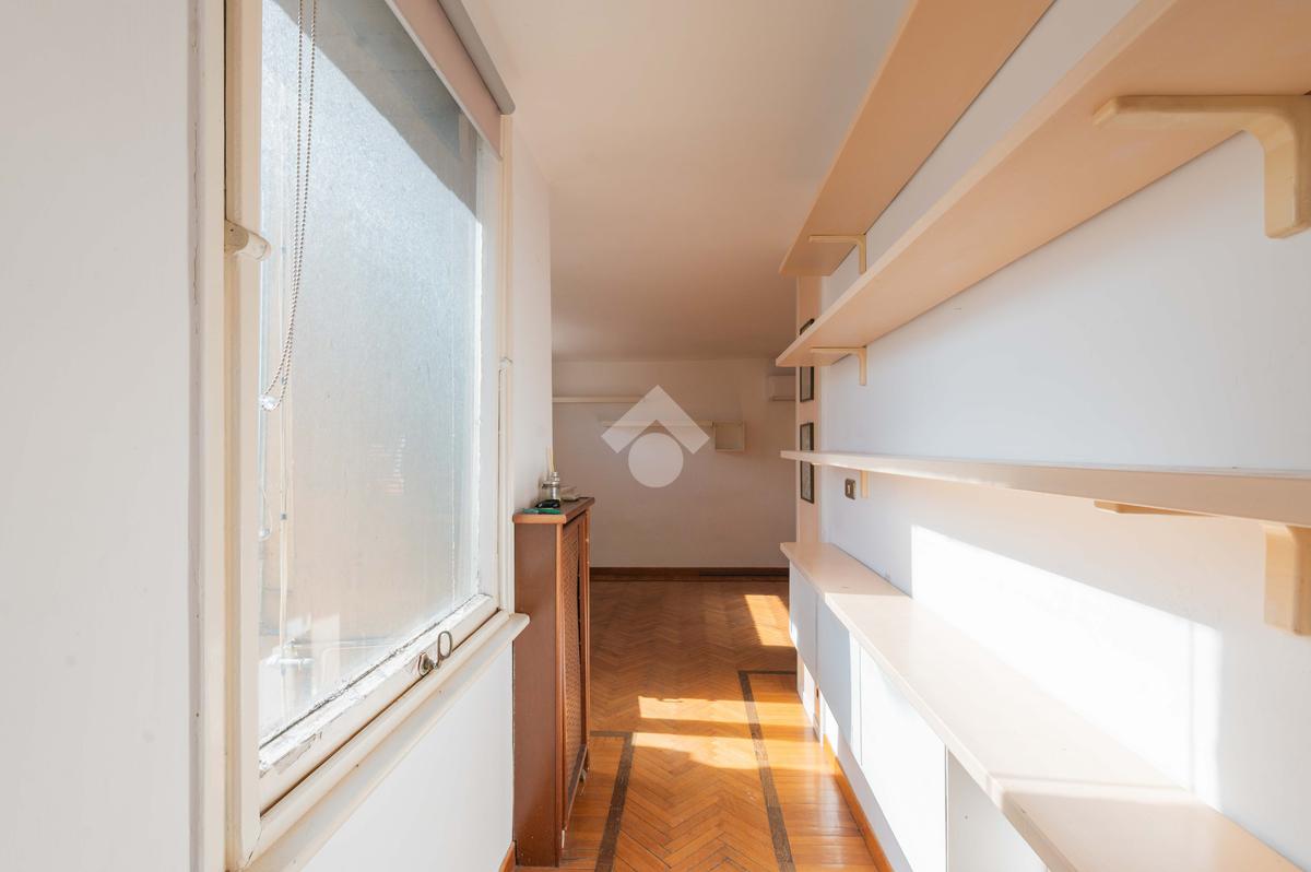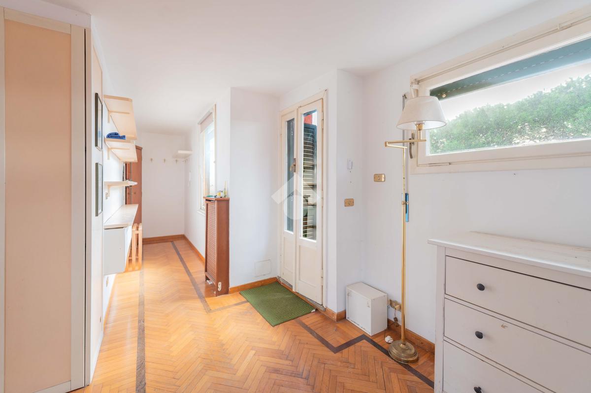 SUPERATTICO di circa 35 mq posto al 5° piano all'interno di una palazzina dotata di ascensore che arriva al 4° all' interno di un comprensorio di due palazzine in cortina. L'immobile è composto da ingresso, zona giorno/notte, angolo cottura, due armadi a muro e bagno finestrato con doccia. Il vero protagonista è l'ampio terrazzo di circa 100 con affaccio aperto e panoramico nel verde. Dispone di pavimenti in parquet, climatizzatore ed il riscaldamento centralizzato con i contabilizzatori. La soluzione immobiliare è da ristrutturare.